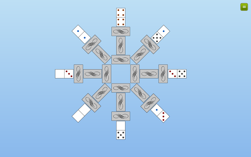 Простой пасьянс из домино. Цель игры - убирать костяшки по две так, чтобы сумма точек на данных костяшках равнялась 12. Игра может помочь детям научиться элементарному счету, а взрослым убить 5-10 минут свободного времени.