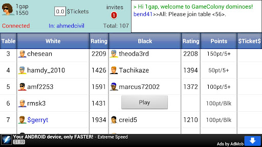 Dominoes : play amp; chat online for FREE or for prizes. Compete to winWith Dominoes GC you can play online multiplayer dominoes on Android phones and tablets with real players from all over the world Three popular dominoes variations supported: Fiveup or Muggings, Draw, Block. There are always active players and games here to watch and play.On your Android phone or Android tablet, you can now play and chat for FREE in a large online dominoes club for players all over the world. You can interact with real people, chat, watch other people play, improve your skills and your rating. It39;s a whole social network around the game of dominoesquot;GCquot; in Dominoes GC stands for www.GameColony.com a site where more than 20 different games of skill can be played 24 hours a day.You can invite players or respond to invitations.Internet connection required. WIFI connection is not strictly necessary this Dominoes GC app will play very well with 3G connection. Your dominoes game will automatically reconnect if connection gets lost.Dominoes GC is an elegant and aesthetically pleasing highquality app.Try it and rate it amp; quot;1quot; itIf you have suggestions for improvement, please drop us a note.There39;s a great number of simplistic apps out there your standard primitive shootemups angry bird concoctions or games against roboplayers. Good online multiplayer games for mobile phones and tablets, however, are quite hard to find they are not that easy to make and to make well.We hope that you find this multiplayer online dominoes app 39;Dominoes GC39; from GameColony.com enjoyable and funAmong Dominoes GC features: Ladder competition. Every 1st of the month, Top 10 Ladder players receive Ticket money prizes that can be cashed out. http:www.gamecolony.comladderrules.shtml Player Forum, where players can leave messages and participate in discussion threads Referral program you can refer your friends and get paid 20 in recurring Ticket game commissions. When the new players that you recommend indicate your player name as a 39;recommender39; at signup, you would receive an immediate automatic commission for their Ticket games.