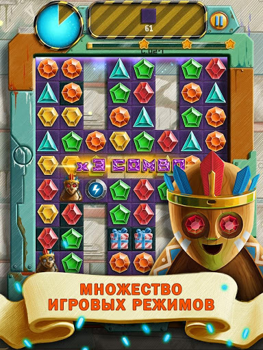 Перемещай кристаллы, используй бонусы и проходи самые интересные, простые и сложные уровни этой крутой головоломки. Открывай новые уникальные миры с алмазами, самоцветами и драгоценными камнями. Море веселья и удовольствия, простой и захватывающий игровой процесс!