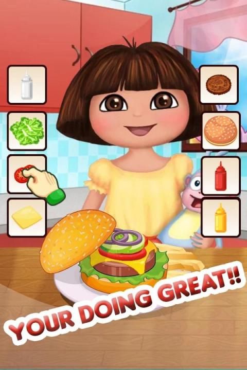 Жизнь в ресторанной индустрии не просто. Помощь Дора приготовления шеф Приготовить еду заранее, превратить молочный коктейль, и жарить картофель фри постоянно. Кроме того, держать глаза на печке и не выгорают пищу! Подавать гамбургеры и бутерброд с правом ингредиента, который ваш клиент просил. С увеличением спроса, вы должны действовать быстро, так же, как и в реальной жизни! Вы узнаете, что эта игра настолько захватывающая, и время прошло так быстро в этом оживленном ресторане!