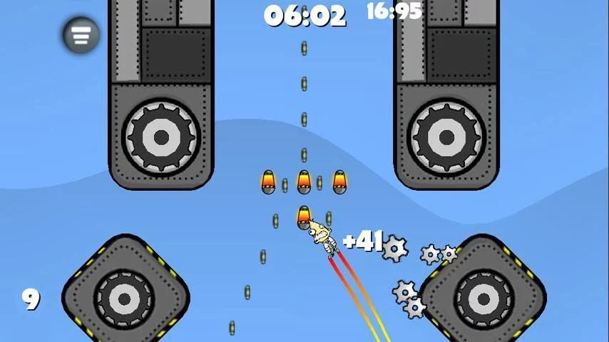 You control a wacky flying professor with rocket boots attached to his feet. You can choose your controls between, "Tilt" or, "Touch".