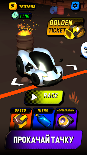 Соревнуйтесь и получайте монеты. Прокачивайте вашу тачку и открывайте новые автомобили.