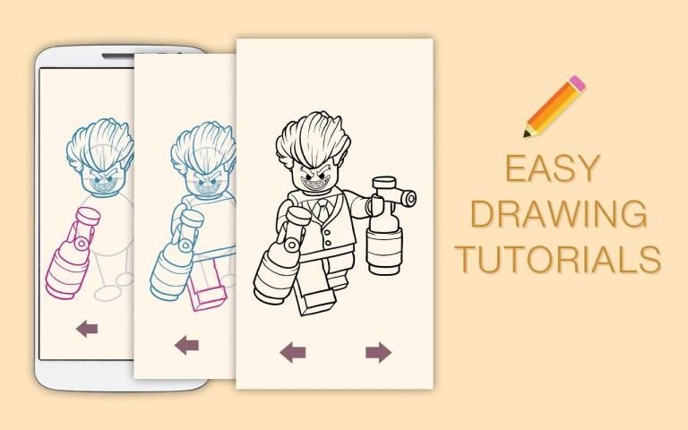 Учитесь рисовать милых персонажей мультфильма Лего Бетман легко с помощью наших подробных пошаговых уроков прямо на экране вашего мобильного устройства.