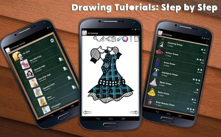 Мы предлагаем вам уникальное приложение, которое научит вас легко рисовать красивые платья для девочек с помощью простых пошаговых инструкций!