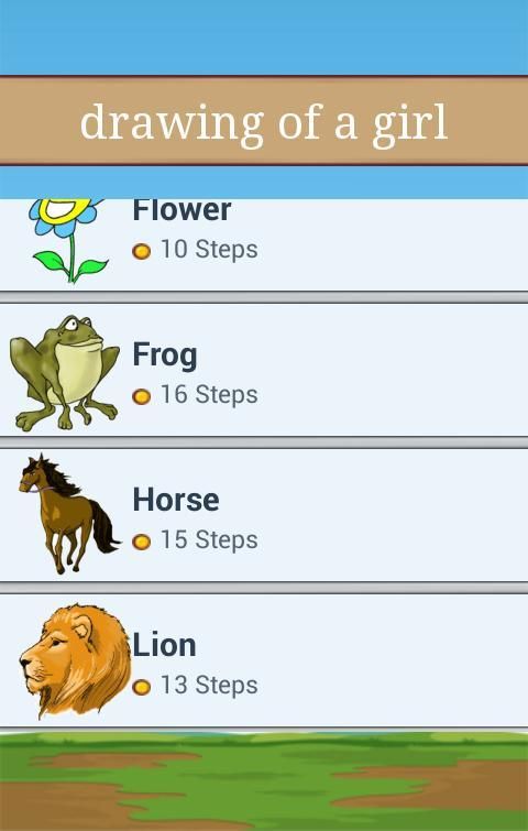 В этом приложении, вы должны следовать этапы рисования фигур на шаг за шагом, пока не дойдете до заключительного этапа, чтобы сравнить рисунок с оригинальным рисунком.