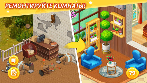 Создавайте новую домашнюю мебель и предметы декора, складывая милые и красочные иконки и бросая вызов сотням уровней игры ""три в ряд"".