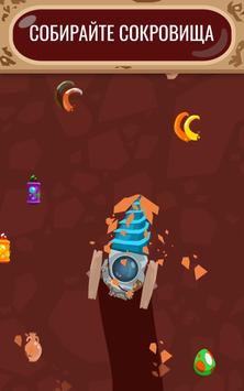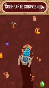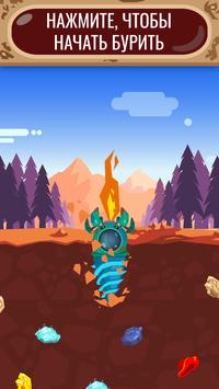 Нажмите, чтобы начать бурить, и перетащите, чтобы переместить бур влево или вправо, собирая сокровища по пути.