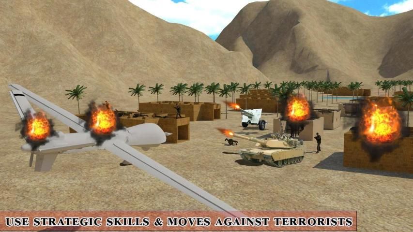 Талибы взяли под свой контроль большую площадь пустыни. Вы были поставлен во главе флота из последних дронов взлетать и управлять из удаленного местоположения. Талибы готовы атаковать в ближнем городе .Они имеют Привет атаковать невинных граждан.