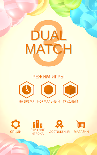 Dual Match 3 – головоломка на подбор трех одинаковых элементов, в которой игроки стараются набрать высокий счет, соединяя 3 или более шариков одного цвета и с одним номером.