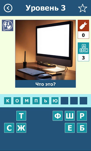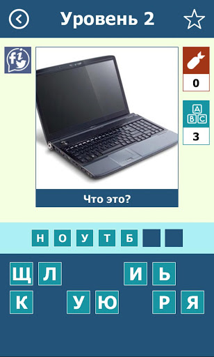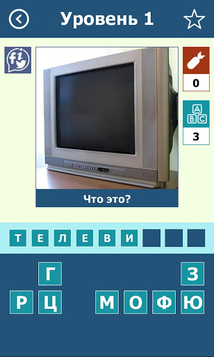 Викторина проста и занимательна. Вам предлагается фотография (на более сложных уровнях – фрагмент фотографии), на которой изображен бытовой электронный прибор. Вам нужно узнать его, и составить название из предложенных букв. Букв больше, чем потребуется, «лишние» можно убрать с помощью подсказок двух видов. Предусмотрена опция «помощь друга», которая работает во всех основных соцсетях – В Контакте, Facebook, Twitter.