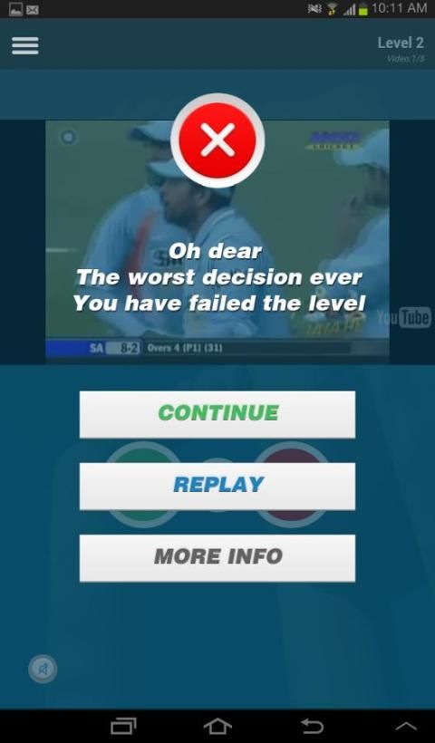 Там будет определено количество уровней, где каждый уровень предоставит вам возможность увидеть и дать свое решение на нескольких ODIs и контрольных матчей.