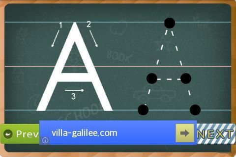 Дети учатся писать алфавиты легко подключения точек. Программа содержит 10 изображений, которые просят детей, чтобы завершить образ, соединяющих точки.