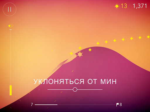 Уклоняйся от смертельных мин-ловушек одним касанием, чтобы не останавливаться в полете вдоль горизонта. Если мяч задевает мину, он теряет скорость, и тогда подняться выше в таблице лидеров становится сложнее.