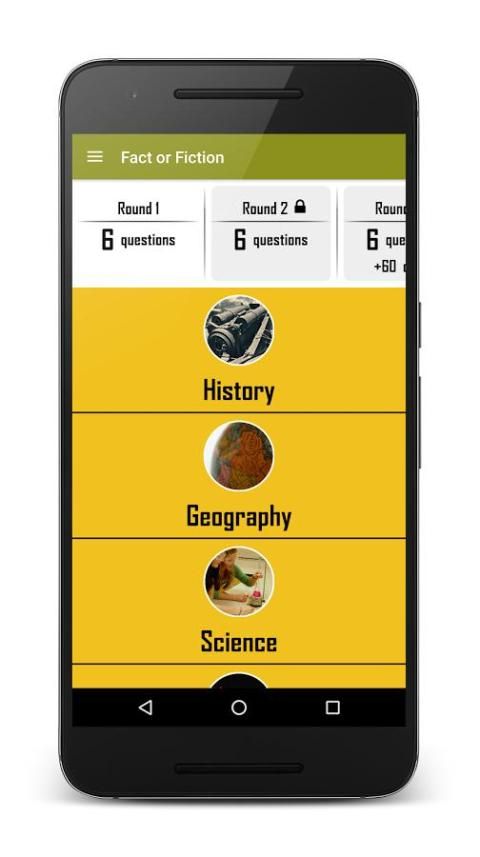 Игра очень проста, выбрать категорию - каждая категория отображает количество вопросов, требующих ответа в этом раунде - и ответить или вымысел. Чем быстрее вы ответить на вопрос, тем больше очков вы заработаете, так что эта игра все о точности и скорости. Есть много категорий, чтобы выбрать из ли вы в спорте, Знаменитости, музыка, история, искусство, или больше, мы их покрытыми.