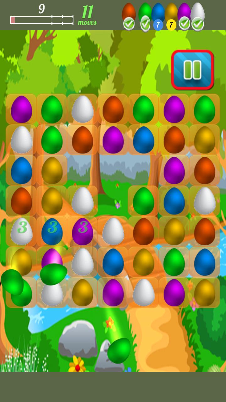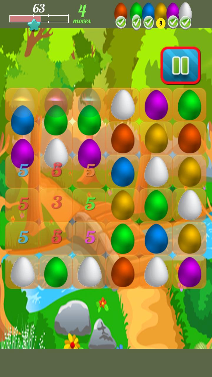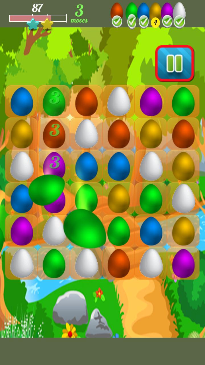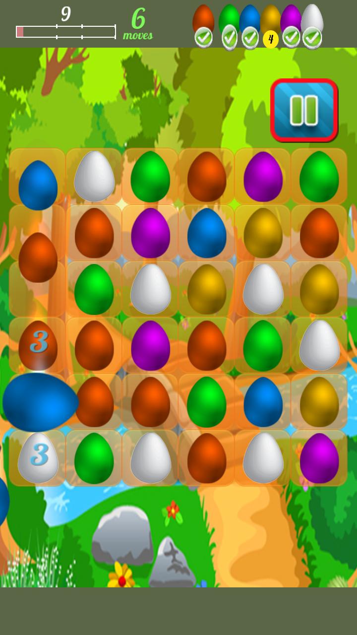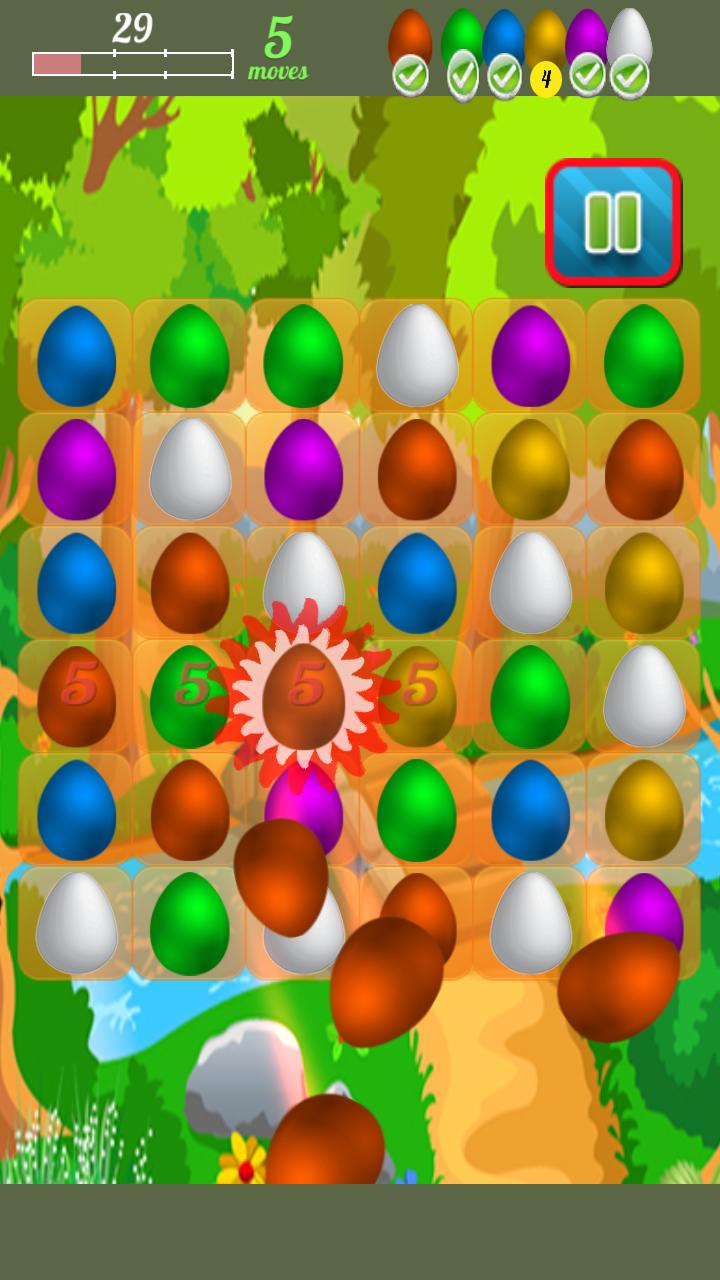 is brain training candy egg fun and Egg broker can not crush all eggs without story. Match same color of eggs to crush breaker eggs fun. Chicken run out from eggs for blasting same color of matched eggs