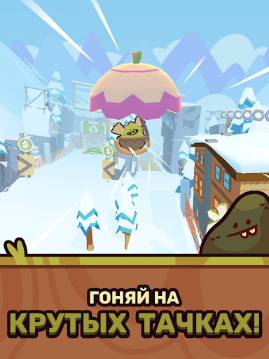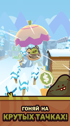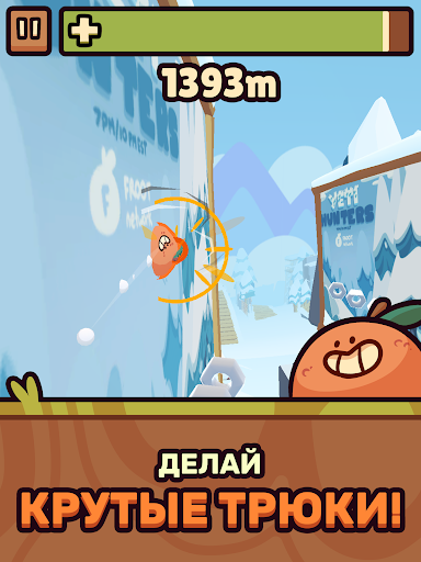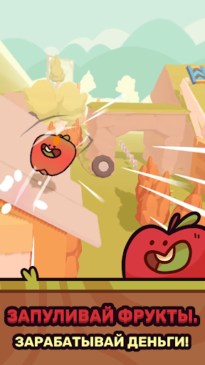 Интуитивно понятное управление одним касанием — и фрукт уже летит над живописными горами, и чем дальше он пролетит, проедет и проскачет, тем больше вы заработаете!