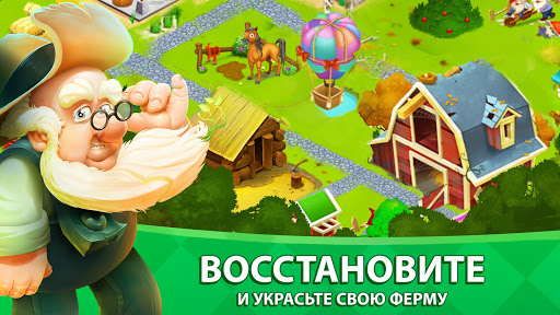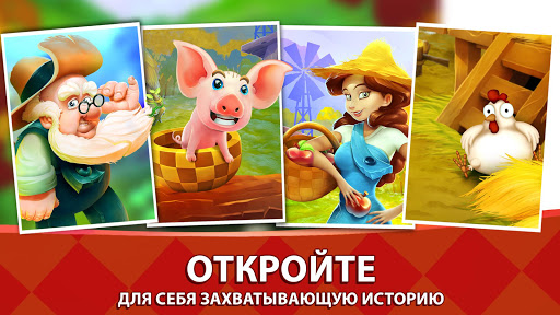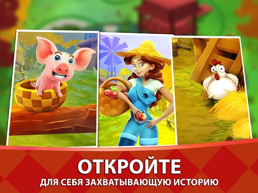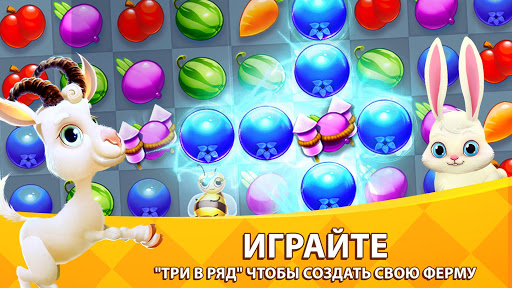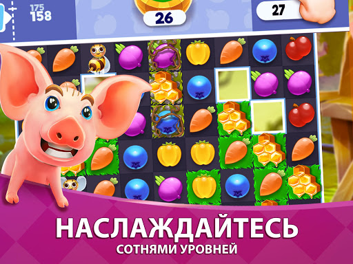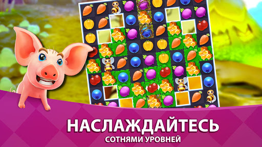 Играйте на захватывающих уровнях игры типа «собери 3 одинаковых элемента», чтобы построить и украсить ферму своей мечты!