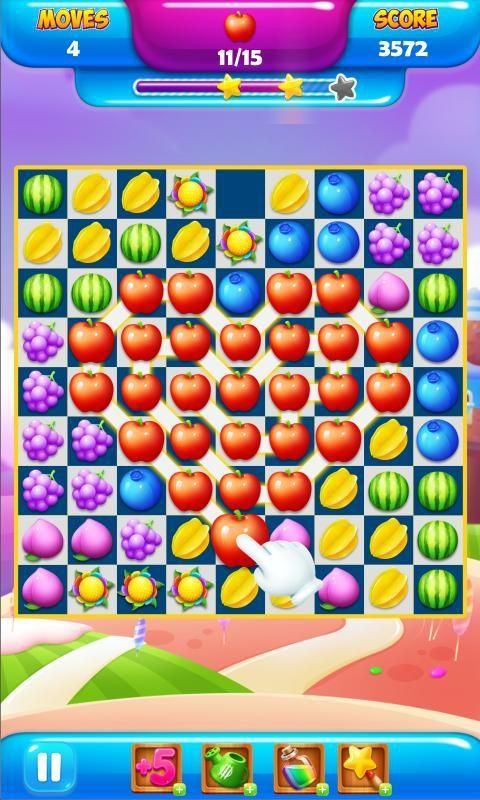Подключите три и матч фруктов, как многие, как вы можете остановить монстр ваших движений!