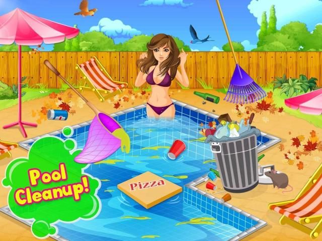 The party is near but you need to fix some things. The swimming pool is dirty and needs some cleaning. Feeling tired?