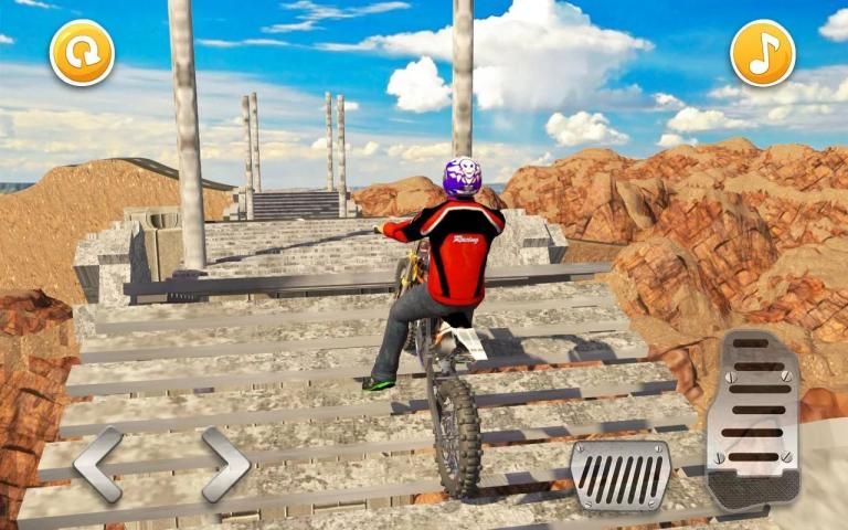 Проходят через несколько сложных уровней. Каждый уровень является более захватывающим, чем предыдущий уровень. Идите медленно и постепенно, и убедитесь, что вы держите свой велосипед в равновесии.