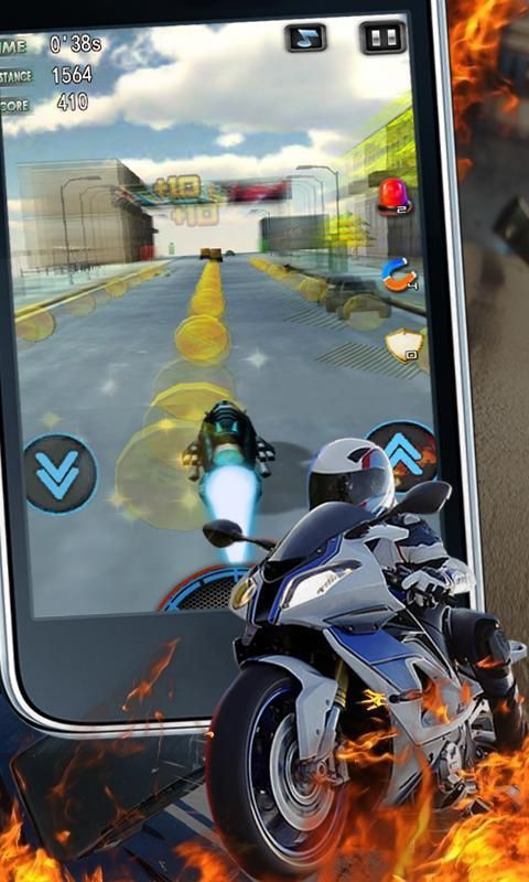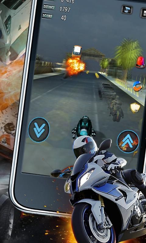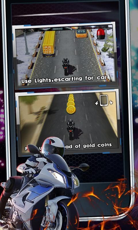The new play, a new gaming experience; use the touch screen and the gravity sensing operation to control your motorcycle, 3D view has shocked expression. let your moto boom in the street, experience the extreme pleasure!