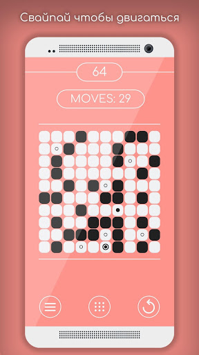 Вам всего лишь нужно свайпать пальцем по экрану! Вы должны двигать шар, который можешь ходить только по белым блокам. Так же вы можете изменить цвет чёрных блоков на белый, с помощью вашего шара. Ваша главная задача - создать путь к конечному блоку, и дойти до него.