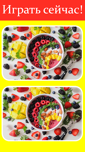 игры разница - внимание развитие - одна из немногих фотографий еды, найти и определить ее в чём разница. Сравните фотографии продуктов, фотографии вкусных фруктов, обнаружите 5 разных и определите их. тест на внимание, концентрация внимания с разница игры - вкусная еда.