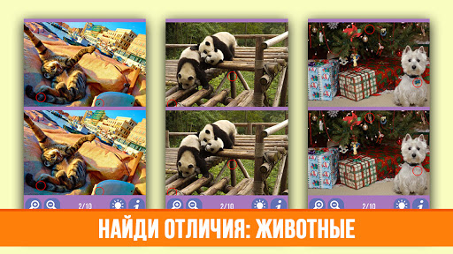 Найди отличия: Животные - увлекательная игра на поиск отличий. Классические правила игры - вам нужно найти 10 отличий на двух картинках. В сложную минуту поможет подсказка, которая покажет область, где находится отличием. Игра понравится как взрослым, так и детям!