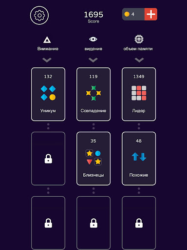 Каждый уровень проверяет ваши когнитивные навыки и умственные способности. Вы можете отслеживать свои успехи после каждого уровня. В зависимости от ваших способностей вы можете получить от 1 до 5 звезд. Завершение каждого уровня, по крайней мере с 3 звездами, обеспечит вам одну золотую монету.