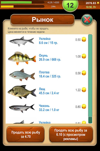 - с просмотром рекламы, можно продать рыбу на 30% дороже;