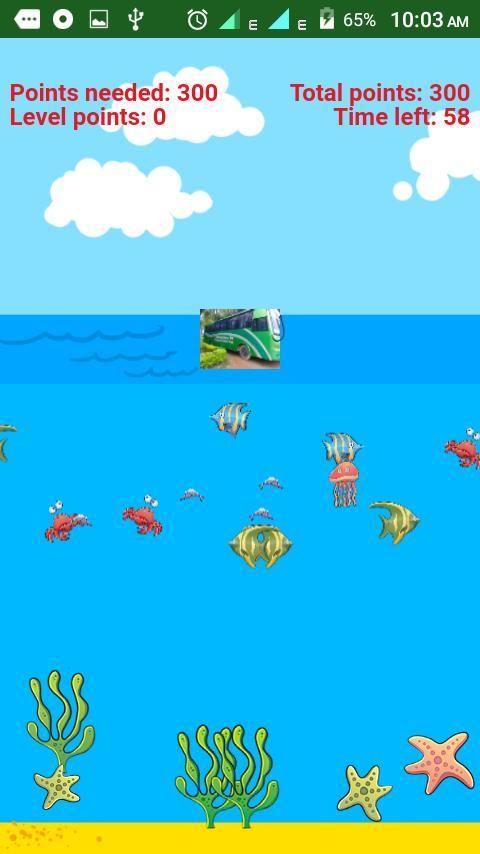 В этой игре геймер должен ловить рыбу быстро в течение времени уровня и должен набрать достаточно очков, чтобы пересечь все levels.In каждый уровень, большая рыба содержит большие очки, средняя рыба содержит средние точки и мелкая рыба содержит мелкие points.Required точки и время будет увеличено на каждом уровне.