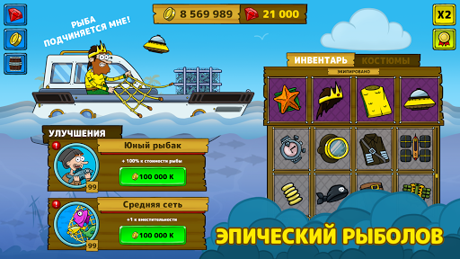 - Прокачивай свою лодку, чтобы ловить как можно больше рыбы и скорее отправится к другим берегам за новыми приключениями.