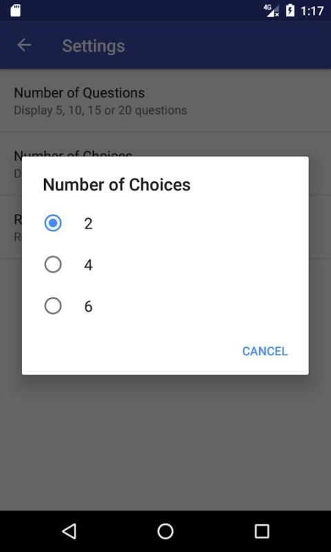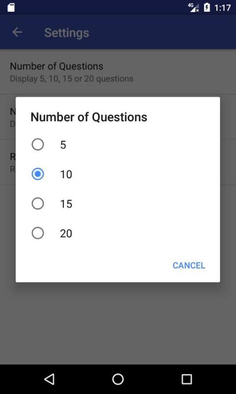 • Выберите число вопросов (5, 10, 15, 20).