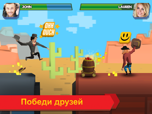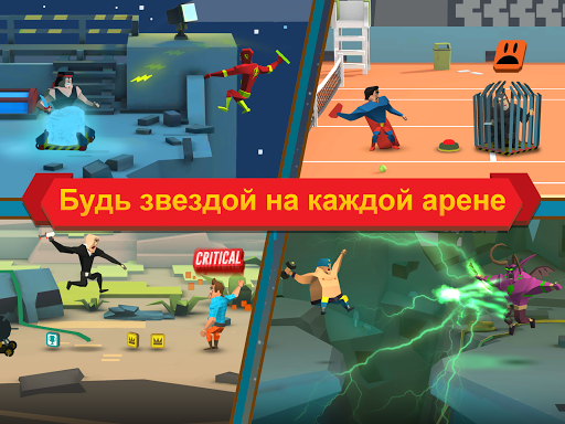 Выбери своего бойца из 40 доступных карт и улучши его, чтобы не отстать от своих врагов. Вот Bowmaster, Greenie, вот Apeboy, а вот и Big Basketball Fella. Выбирай любого из них! У каждого бойца есть свое особое комбо.