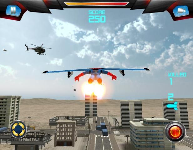 Помощь паука героя в полете над боя и уничтожить противника planes.spider герой вооружен ракетами и снайперским ружьем на крыльях, паук монстр может стрелять ракетами на военные самолеты противника и наземных коммандос.