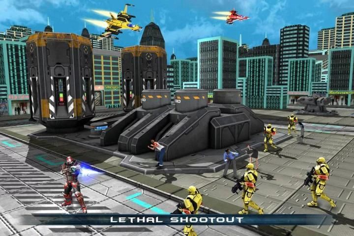 Станьте супергероем в симуляторе летающих роботов! Эта игра роботов определенно будет отличаться от других игр супер-роботов или игр-симуляторов супергероев, которые вы играли. Задачи роботов и роботов не являются единственной функцией захвата глаз робота-симулятора, но робототехнические пушки, чтобы уничтожить роботизированных воинов, делают это удивительным супер-героем. Управляйте городом-супергероем и уничтожайте силу робота во время футуристической битвы. Восстановите свою землю, которая когда-то была захвачена злыми роботами. Уничтожить их штаб-квартиру и спасти сограждан от нападения роботов. Стальные роботы наверняка подпитывают вашу любовь к роботам, сражающимся с супергероем и ружьями. Если вы любите роботов-солдат или роботов-стреляющих игр, то вы обязательно полюбите игры воинов-роботов с летающими супергероями, роботами, автоготами и роботизированными воинами.