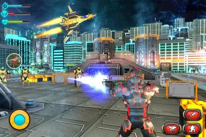 Реалистичные элементы управления и физика для летающих ботов, супер героев и полеты с роботом будут держать пользователя в игре с этим роботом. В других играх супергероя игрок получает только контроль над летающим ботом и воинами-роботами, но элемент действия, пушка bazooka и лазер позволят вам больше, чем игроки в большинстве игр супергероя. Все это, безусловно, делает этот симулятор лучшей игрой супергероя.