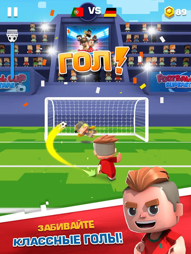Сыграй в одну из самых доступных, увлекательных и просто забавных аркадных спортивных игр в мире: Football Cup Superstars! Выбери любимую национальную сборную среди 32 прошедших квалификацию команд, найди многочисленных спортивных звезд по всему миру, каждый из которых обладает уникальными навыками и характером, и пробей себе путь к славе, став чемпионом игры в футбол!