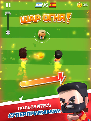 Беги, пасуй, обходи защитников и бей по мячу ради зрелищного гола. Оттачивай свои движения и хватай усиления, которые прокачают футбольные навыки и помогут забить гол! Пробивай пенальти, побеждай в групповых матчах, дойди до финала чемпионата Football Cup и стань победителем!