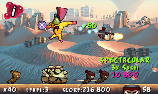 Help our Hero, Bernie, to stomp as many angry war ninjas as possiblequot;Best Zombie versus Ninja game I39;ve ever playedquot; The Game TrailSimple and addicting Jump em up in the most sought after game in the world. Help our Zombie Hero, Bernie, to avenge the insult on his kind by stomping as many angry war ninjas as possible. Stay alive by avoiding ground and flying ninjas. Can you make it all the way to the Sushi Sumo Ninja without losing your limbs? The game was created based on the most popular search strings that players were looking for.Features: Mario style enemy stomping OpenFeint Leaderboards amp; Achievements Kick A music and sound effects Different sorts of Power ups Smooth 3D animations combined with hand drawn background Quick start time All this for the price you prefer the most