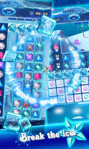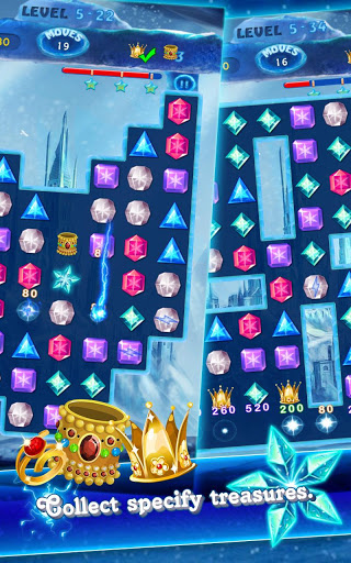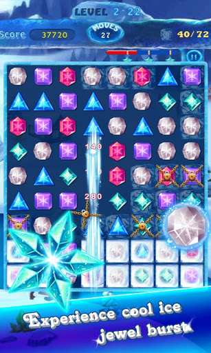 - Match 5 Jewels горизонтально или вертикально может выиграть замороженные драгоценные камни.