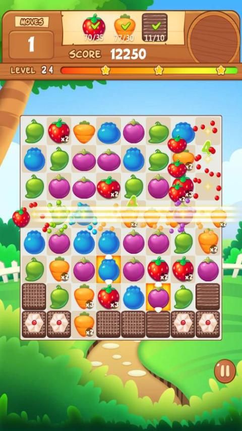 Матч по крайней мере 3 плодов в тот же цвет, чтобы раздавить плоды в этом farm.the больше фруктов вы подходите, тем выше вы score.There много различных фруктов или овощей, таких как клубника, corn.You может сделать фруктов и овощей партии через макияж сок давка и яблочный джем и так on.You будет пить и есть, потому что соблазн фруктов слишком много.