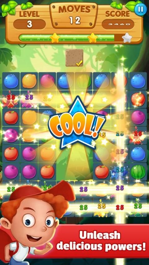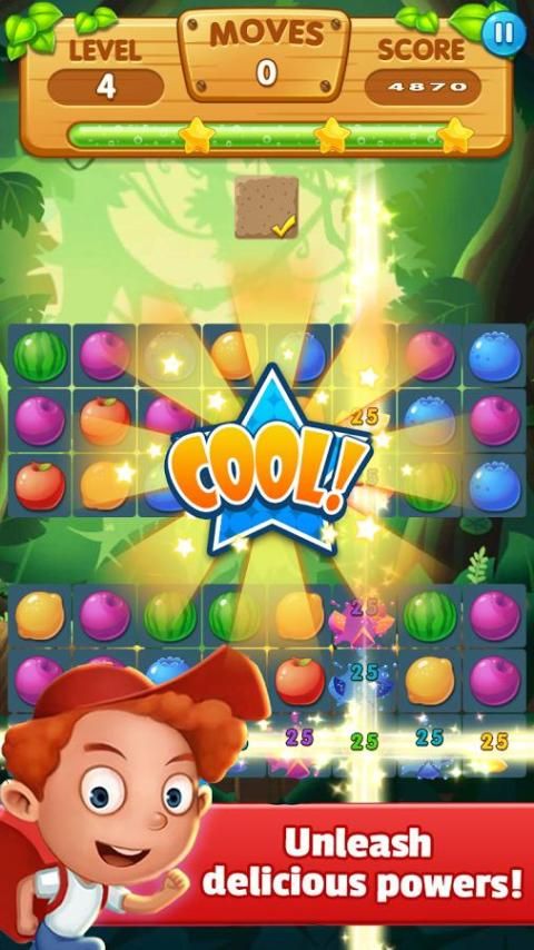 Обмен и Размах же цвета культур, чтобы очистить доску. Это фруктовое farmy сезон! Collect культуры включают яблоко, арбуз, сок, манго со стратегическим соответствия, чтобы быть фермы супер героев.