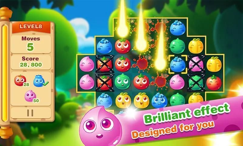 Фрукты дневник, упрощенным соответствия-3 случайный игра-головоломка. Замена соседние плоды, чтобы создать эти соединения и попробовать собрать более трех же цвета те, чтобы получить бонусы, чтобы сделать вас легче достичь целевой счет и получить звезды 3!