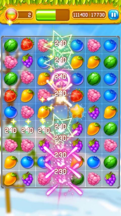 - Много красочных взрывов с типом фруктов вырубные.