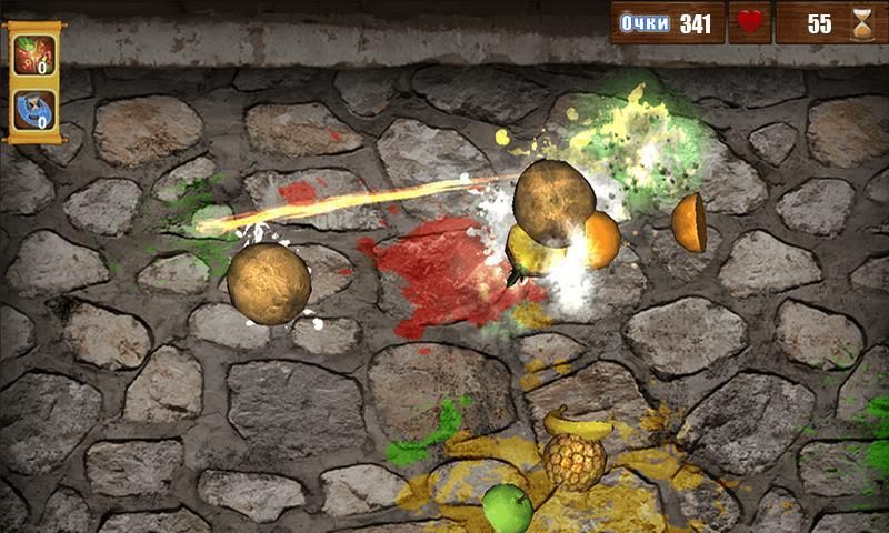 Ваша основная задача, набрать максимальное количество очков за 90 секунд. Опасайтесь бомб. Старайтесь разрезать как можно больше фруктов в подряд, чтобы заработать "Комбо".