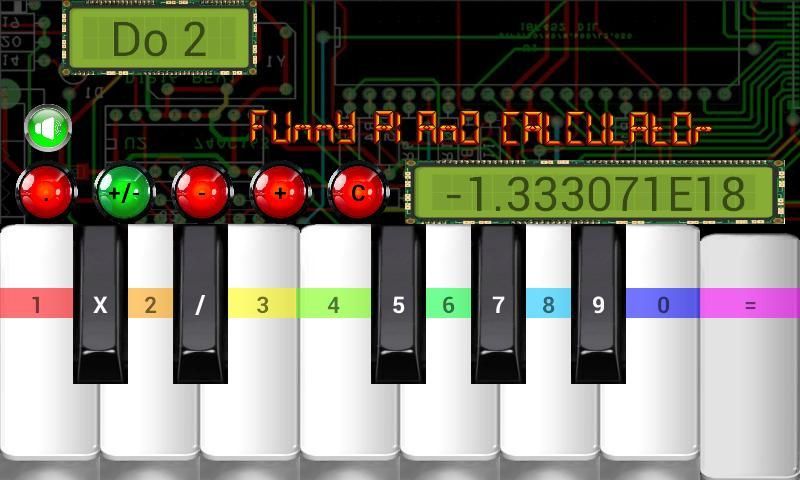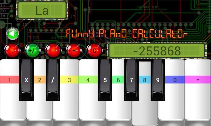 Вы можете установить звук пианино на Mute положение, чтобы использовать только калькулятор с забавным дизайна фортепиано.