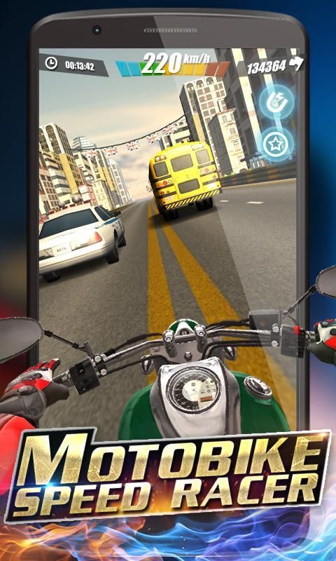Welcome to speed world. Never drive too fast in real world? Dare to challenge top moto racers? Now pick up the world class motos you have always wanted and steer into traffic roads, driving reckless and juiced as sparks fly. Enjoy with this super charged action packed and endless free arcade moto racing competition everywhere with your phone or tablet. Try to beat and overtake your rivals. You got the speed. Just show your fellows what real speed is.