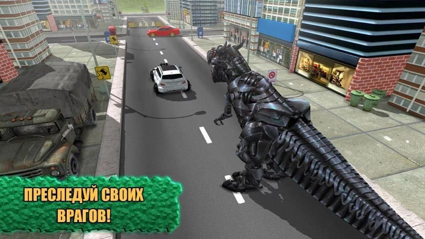 Огромный тираннозавр Рекс защищает город от роботов!
