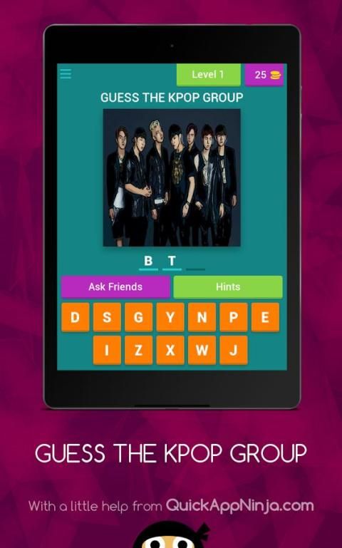 Почему бы не поставить свои знания на тест? «Угадайте KPOP Group» является угадывание игры, которая позволяет узнать, сколько истинный поклонник ты на самом деле. Для того, чтобы играть легко, посмотрите на фотографии, скажите, кто на экране, и перейти к следующему изображению . Гарантируются, чтобы бросить вызов вашего мозга. некоторые из изображений легко, а некоторые нет. Цель состоит в том, чтобы добраться до следующего уровня. не волнуйтесь. Мы предлагаем Вам подсказки, чтобы помочь Вам решить эту картину. вы можете использовать подсказки, как (Full Letter Show) и (1 Letter Show) с вашими монетами. Будьте осторожны, «Угадай KP Group,» рассматриваются как сильное привыкание. Но если вы сделаете это через все уровни, вы действительно ИСТИНУ K - Поппер!